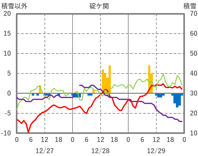 | 日 | 時 | 気温 | 降水 | 風向/風速 | 日照 | 積雪 | 降雪 |