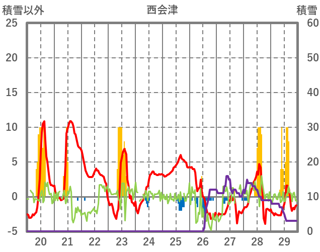 | 日 | 時 | 気温 | 降水 | 風向/風速 | 日照 | 積雪 | 降雪 |
