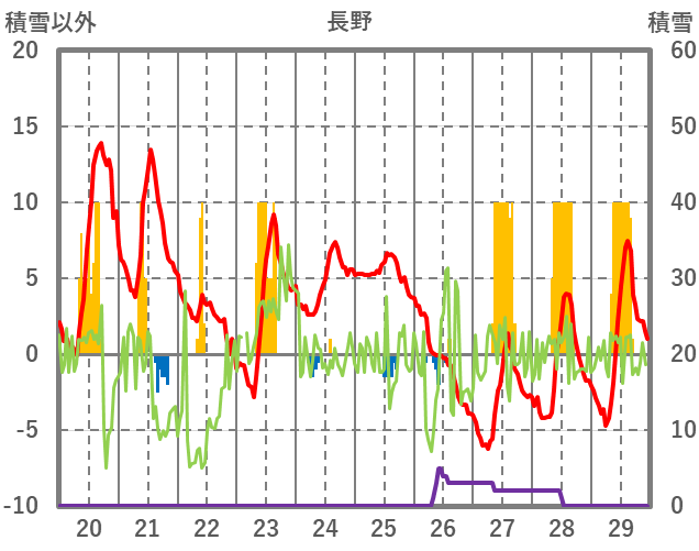 | 日 | 時 | 気温 | 降水 | 風向/風速 | 日照 | 積雪 | 降雪 |