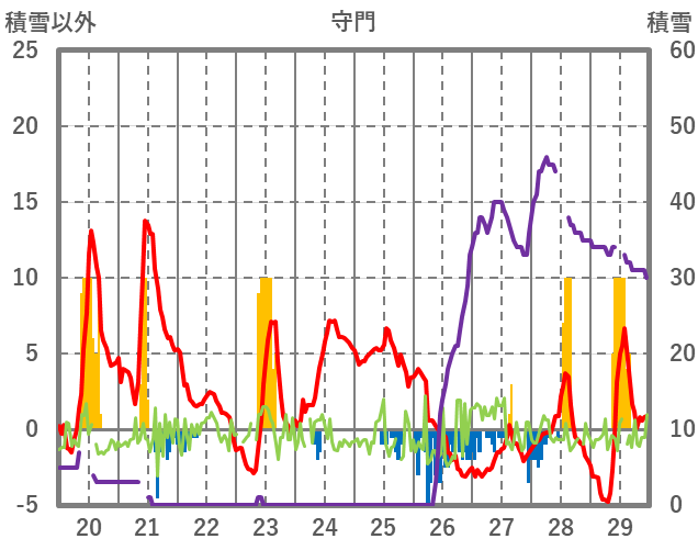 | 日 | 時 | 気温 | 降水 | 風向/風速 | 日照 | 積雪 | 降雪 |