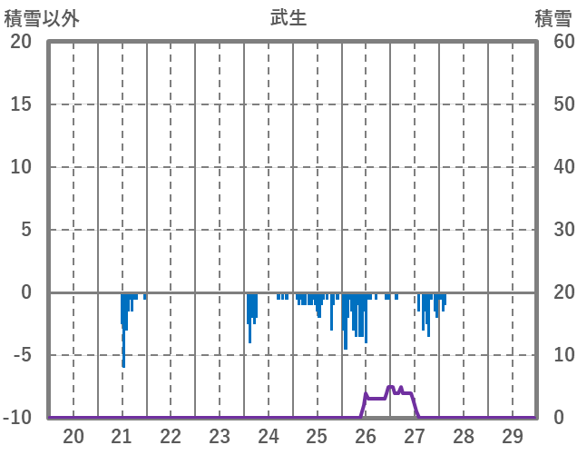 | 日 | 時 | 気温 | 降水 | 風向/風速 | 日照 | 積雪 | 降雪 |