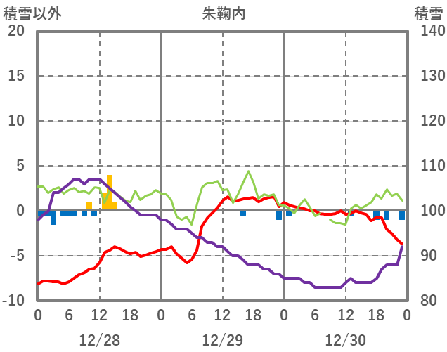 | 日 | 時 | 気温 | 降水 | 風向/風速 | 日照 | 積雪 | 降雪 |