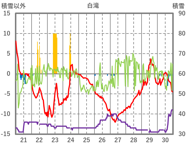| 日 | 時 | 気温 | 降水 | 風向/風速 | 日照 | 積雪 | 降雪 |