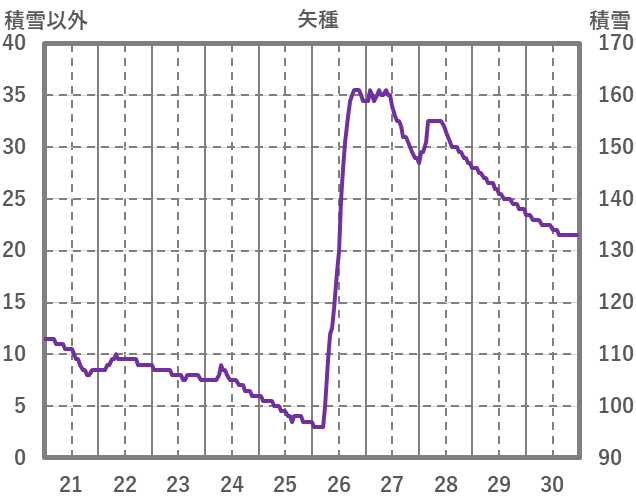 | 日 | 時 | 気温 | 降水 | 風向/風速 | 日照 | 積雪 | 降雪 |