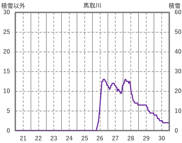 | 日 | 時 | 気温 | 降水 | 風向/風速 | 日照 | 積雪 | 降雪 |