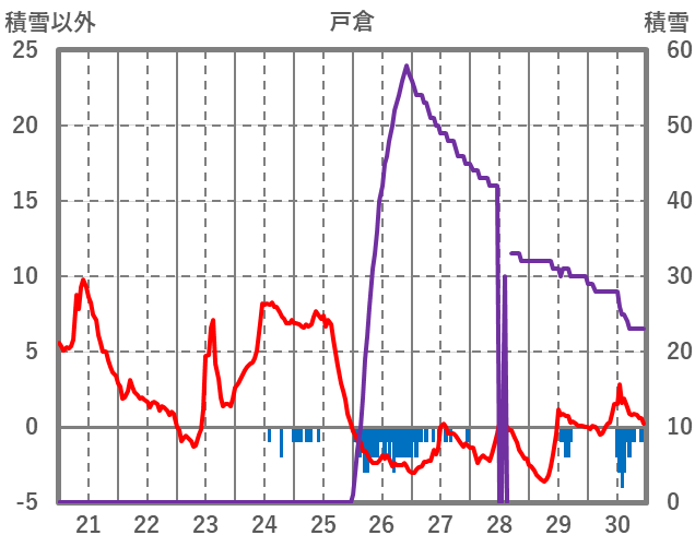| 日 | 時 | 気温 | 降水 | 風向/風速 | 日照 | 積雪 | 降雪 |