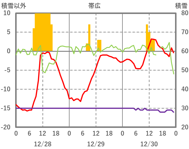 | 日 | 時 | 気温 | 降水 | 風向/風速 | 日照 | 積雪 | 降雪 |
