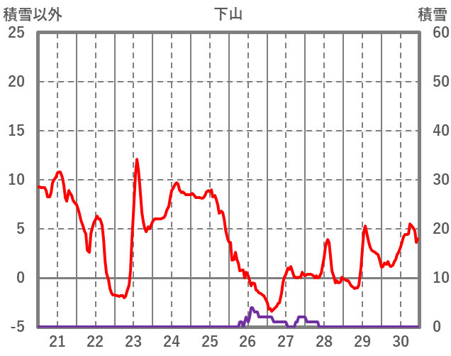 | 日 | 時 | 気温 | 降水 | 風向/風速 | 日照 | 積雪 | 降雪 |