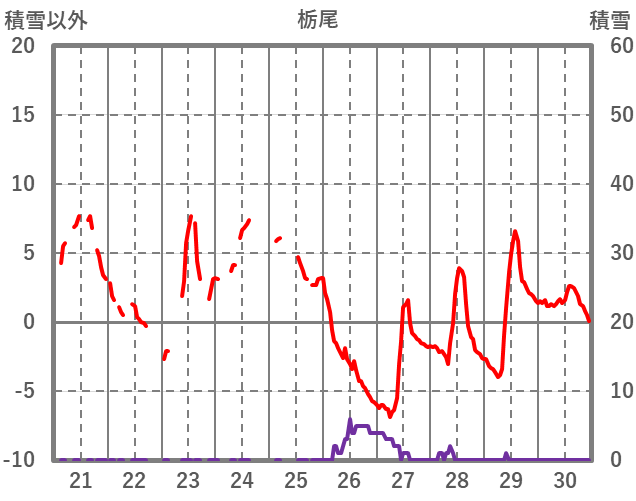 | 日 | 時 | 気温 | 降水 | 風向/風速 | 日照 | 積雪 | 降雪 |