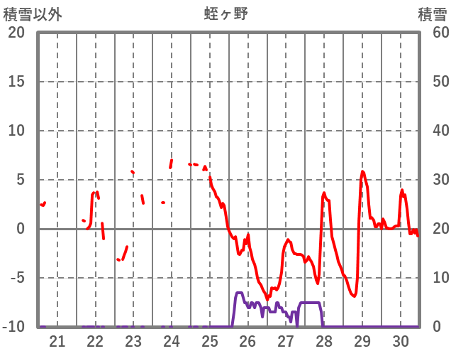 | 日 | 時 | 気温 | 降水 | 風向/風速 | 日照 | 積雪 | 降雪 |