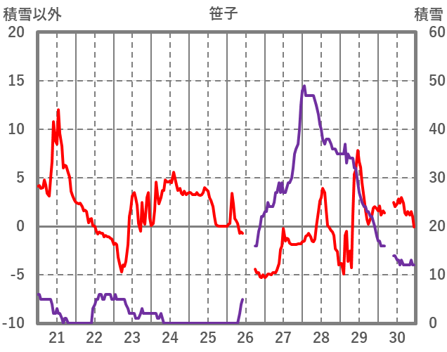 | 日 | 時 | 気温 | 降水 | 風向/風速 | 日照 | 積雪 | 降雪 |