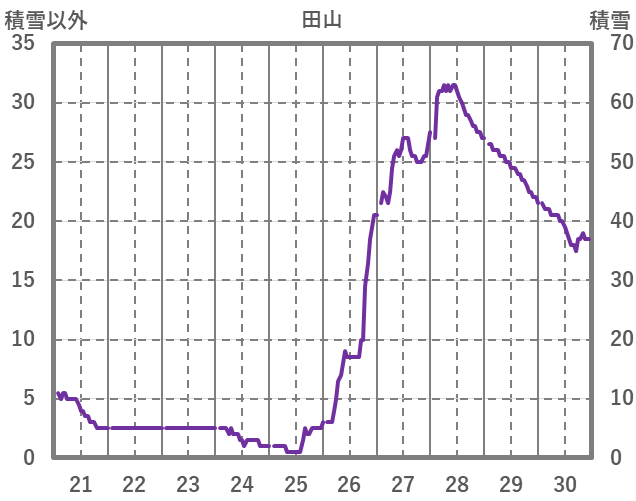 | 日 | 時 | 気温 | 降水 | 風向/風速 | 日照 | 積雪 | 降雪 |