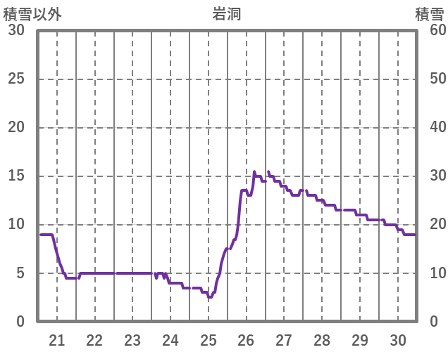 | 日 | 時 | 気温 | 降水 | 風向/風速 | 日照 | 積雪 | 降雪 |
