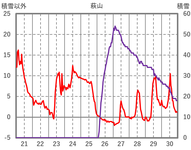| 日 | 時 | 気温 | 降水 | 風向/風速 | 日照 | 積雪 | 降雪 |