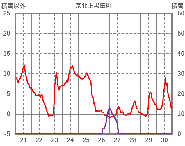 | 日 | 時 | 気温 | 降水 | 風向/風速 | 日照 | 積雪 | 降雪 |