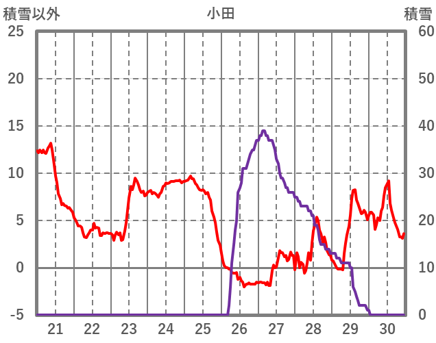 | 日 | 時 | 気温 | 降水 | 風向/風速 | 日照 | 積雪 | 降雪 |
