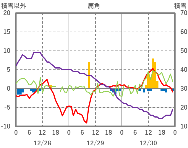 | 日 | 時 | 気温 | 降水 | 風向/風速 | 日照 | 積雪 | 降雪 |
