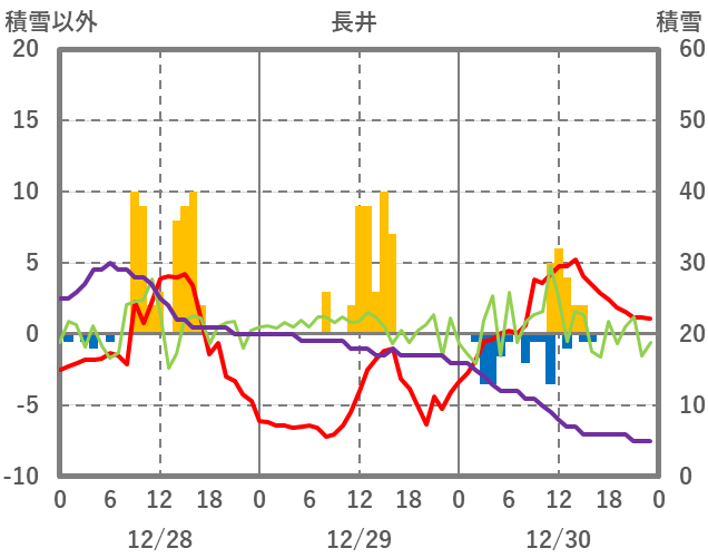 | 日 | 時 | 気温 | 降水 | 風向/風速 | 日照 | 積雪 | 降雪 |