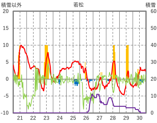| 日 | 時 | 気温 | 降水 | 風向/風速 | 日照 | 積雪 | 降雪 |