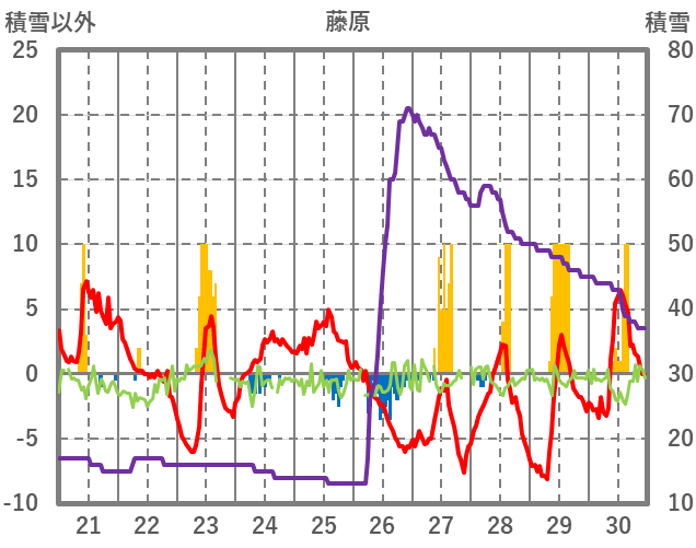 | 日 | 時 | 気温 | 降水 | 風向/風速 | 日照 | 積雪 | 降雪 |