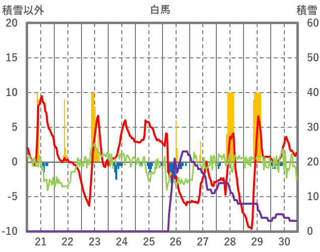 | 日 | 時 | 気温 | 降水 | 風向/風速 | 日照 | 積雪 | 降雪 |