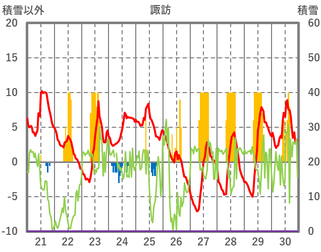 | 日 | 時 | 気温 | 降水 | 風向/風速 | 日照 | 積雪 | 降雪 |