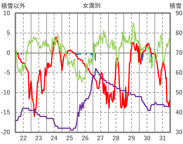 | 日 | 時 | 気温 | 降水 | 風向/風速 | 日照 | 積雪 | 降雪 |