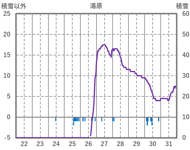 | 日 | 時 | 気温 | 降水 | 風向/風速 | 日照 | 積雪 | 降雪 |