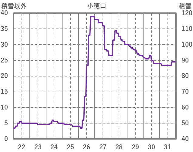 | 日 | 時 | 気温 | 降水 | 風向/風速 | 日照 | 積雪 | 降雪 |