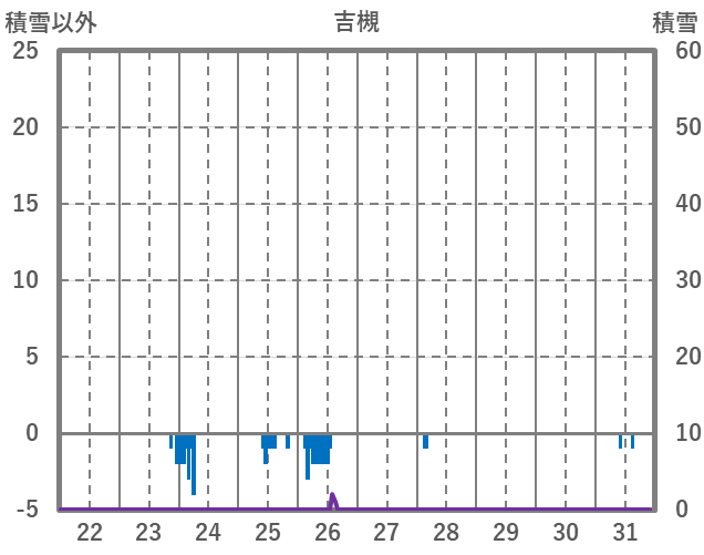| 日 | 時 | 気温 | 降水 | 風向/風速 | 日照 | 積雪 | 降雪 |