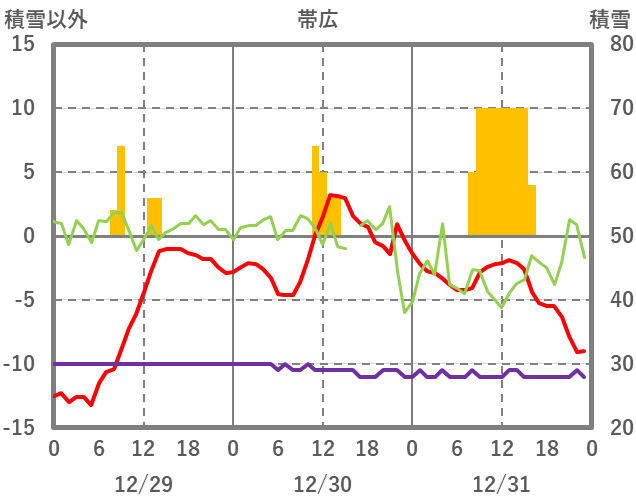 | 日 | 時 | 気温 | 降水 | 風向/風速 | 日照 | 積雪 | 降雪 |