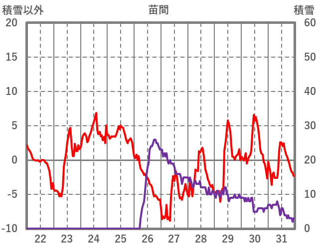 | 日 | 時 | 気温 | 降水 | 風向/風速 | 日照 | 積雪 | 降雪 |