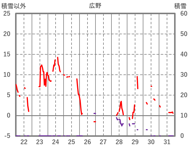 | 日 | 時 | 気温 | 降水 | 風向/風速 | 日照 | 積雪 | 降雪 |