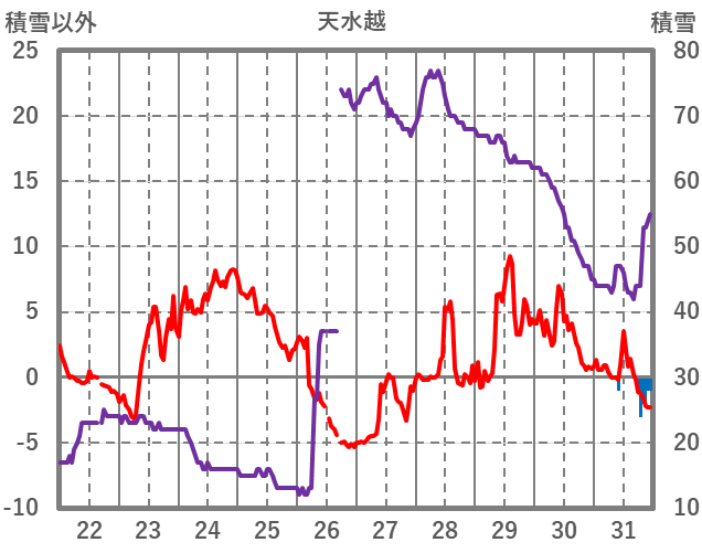 | 日 | 時 | 気温 | 降水 | 風向/風速 | 日照 | 積雪 | 降雪 |