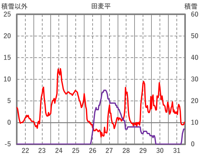 | 日 | 時 | 気温 | 降水 | 風向/風速 | 日照 | 積雪 | 降雪 |