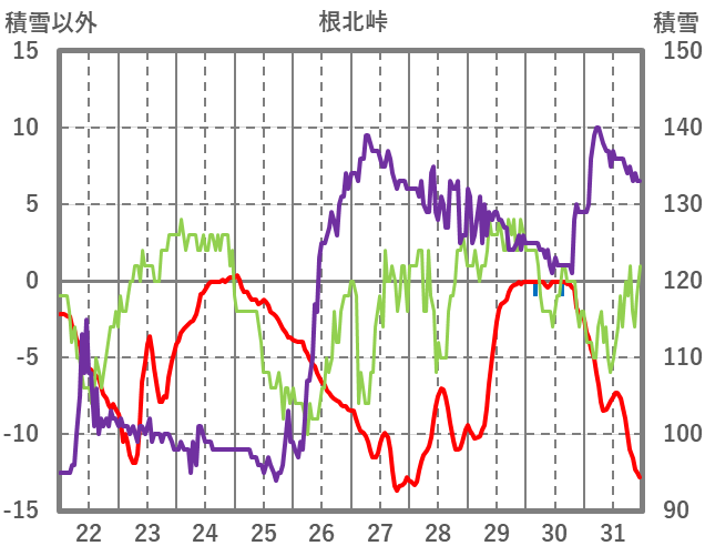 | 日 | 時 | 気温 | 降水 | 風向/風速 | 日照 | 積雪 | 降雪 |