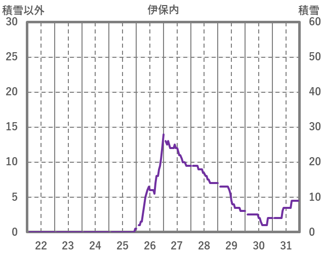| 日 | 時 | 気温 | 降水 | 風向/風速 | 日照 | 積雪 | 降雪 |