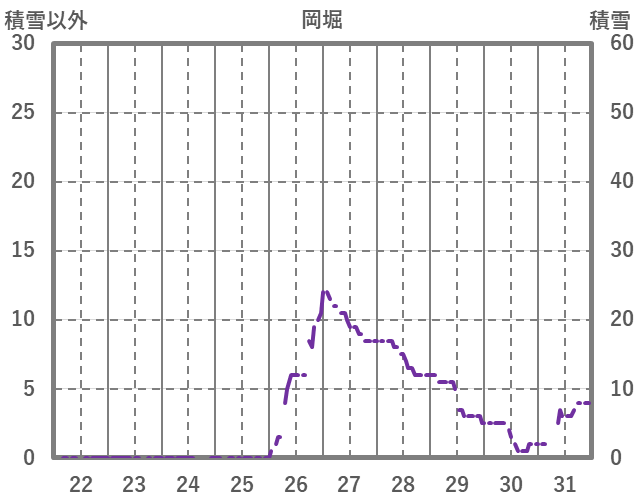 | 日 | 時 | 気温 | 降水 | 風向/風速 | 日照 | 積雪 | 降雪 |