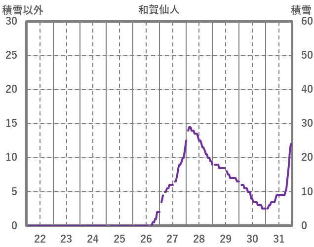 | 日 | 時 | 気温 | 降水 | 風向/風速 | 日照 | 積雪 | 降雪 |