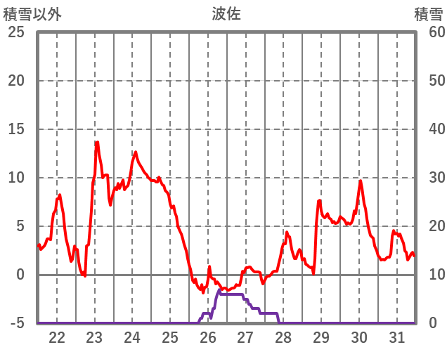| 日 | 時 | 気温 | 降水 | 風向/風速 | 日照 | 積雪 | 降雪 |