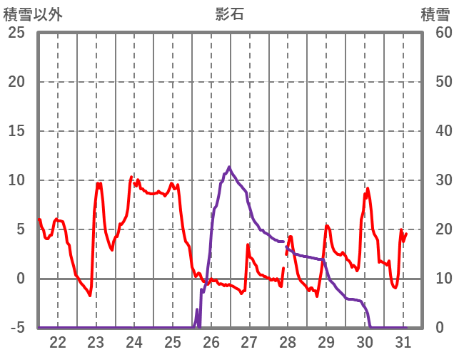 | 日 | 時 | 気温 | 降水 | 風向/風速 | 日照 | 積雪 | 降雪 |