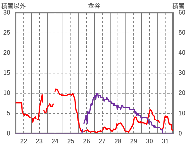 | 日 | 時 | 気温 | 降水 | 風向/風速 | 日照 | 積雪 | 降雪 |