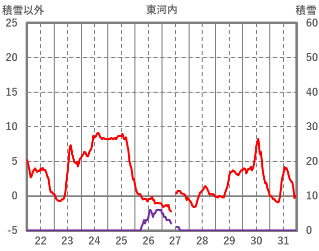 | 日 | 時 | 気温 | 降水 | 風向/風速 | 日照 | 積雪 | 降雪 |