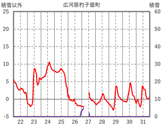 | 日 | 時 | 気温 | 降水 | 風向/風速 | 日照 | 積雪 | 降雪 |