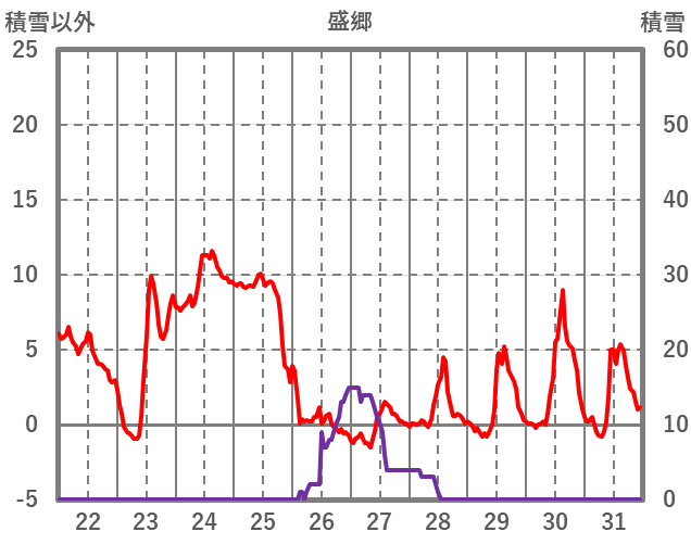 | 日 | 時 | 気温 | 降水 | 風向/風速 | 日照 | 積雪 | 降雪 |