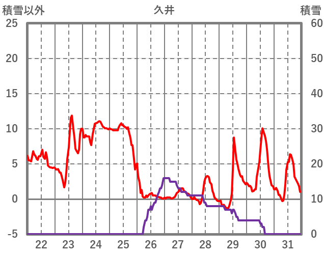 | 日 | 時 | 気温 | 降水 | 風向/風速 | 日照 | 積雪 | 降雪 |