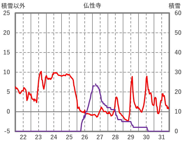 | 日 | 時 | 気温 | 降水 | 風向/風速 | 日照 | 積雪 | 降雪 |