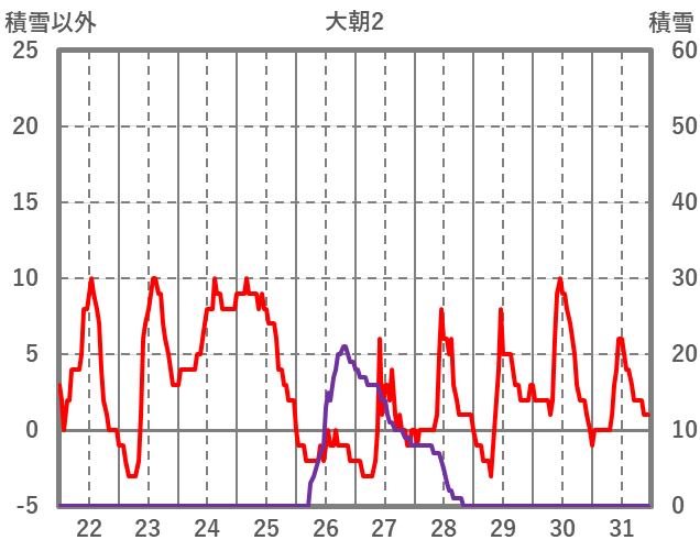 | 日 | 時 | 気温 | 降水 | 風向/風速 | 日照 | 積雪 | 降雪 |