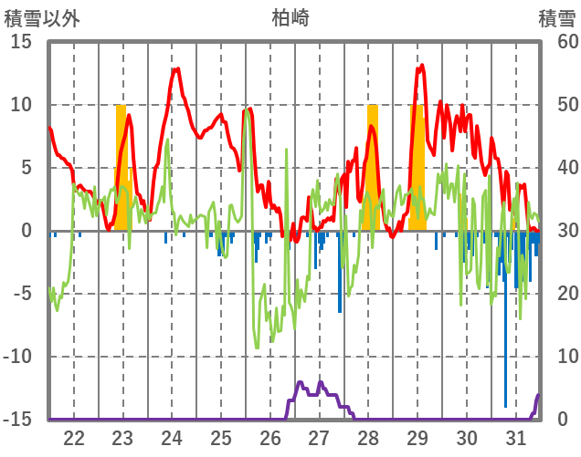 | 日 | 時 | 気温 | 降水 | 風向/風速 | 日照 | 積雪 | 降雪 |