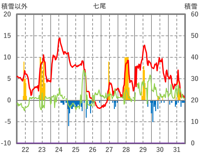 | 日 | 時 | 気温 | 降水 | 風向/風速 | 日照 | 積雪 | 降雪 |